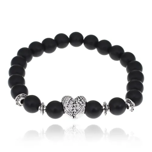 Браслет Сердце с синтетическим камнем Шунгит 8мм BSH-13-14