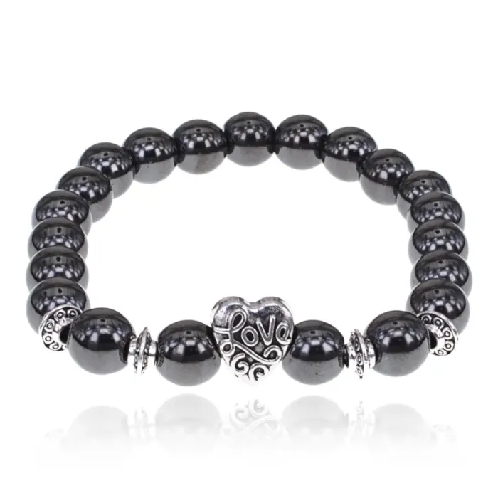 Браслет Love с синтетическим камнем Гематит (не магнит.) 8мм BSH-13-18