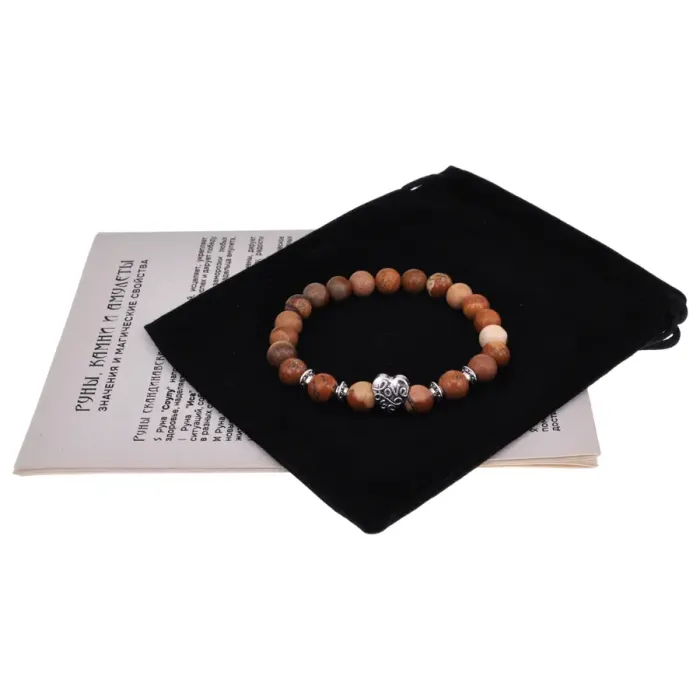 - Бусины диаметром 8 мм из натуральной песочной яшмы придают изделию уникальный вид.