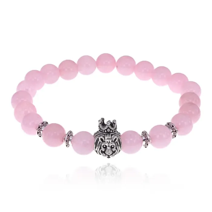 Браслет Царь зверей с нат.камнем Розовый кварц 8мм BSH-13-25