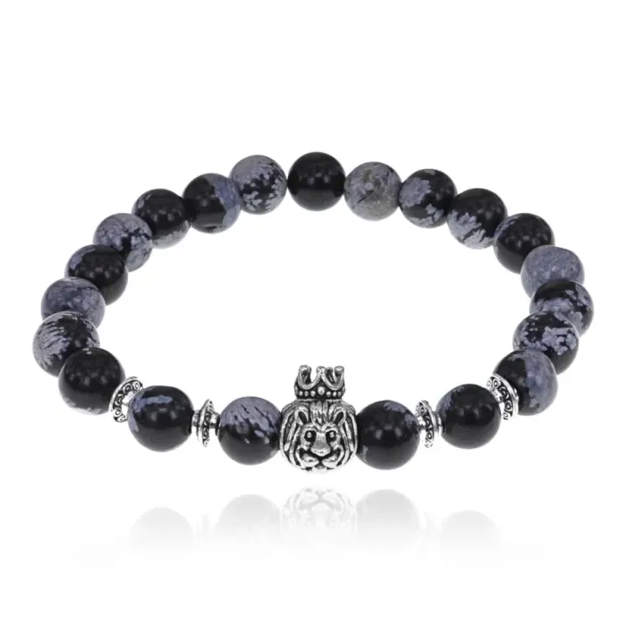 Браслет Царь зверей с нат.камнем Снежный обсидиан 8мм BSH-13-26