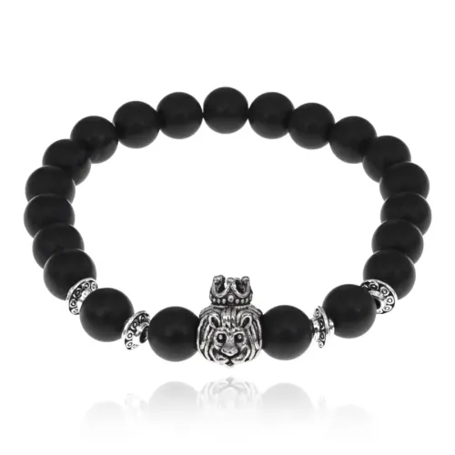 Браслет Царь зверей с синтетическим камнем Шунгит 8мм BSH-13-30