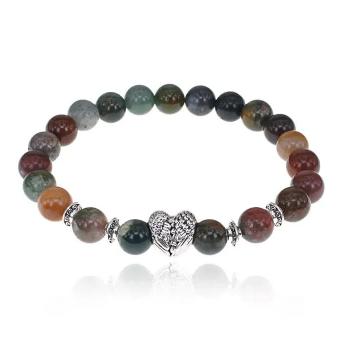 Браслет Сердце с нат.камнем Яшма 8мм BSHE-13-15