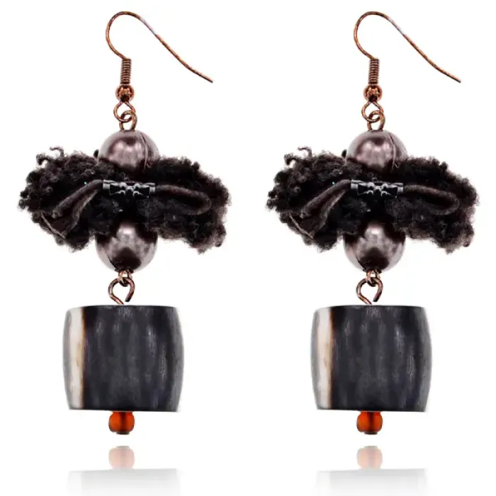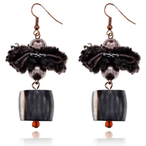 Серьги-сувенир в виде банта коричневого цвета. Изготовлены из бижутерного сплава, пластика и ткани.
