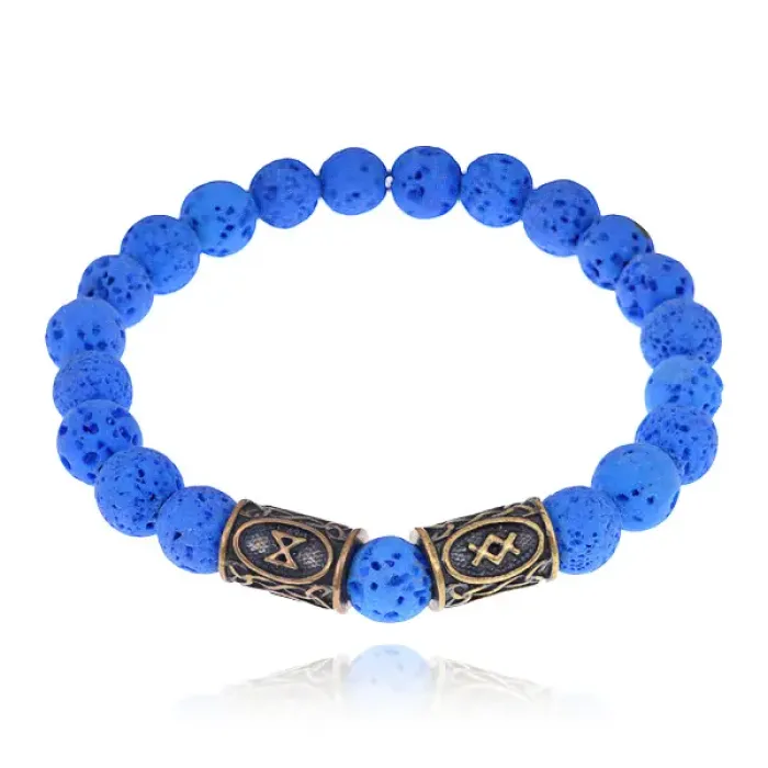 Аромабраслет Здоровье и долголетие BSZRL-03 выполнен из натурального камня лавы синего цвета и украшен рунической формулой, способствующей здоровью и долголетию. Этот стильный аксессуар не только привлекает внимание, но и активно впитывает эфирные масла, что делает его идеальным для аромабижутерии. В комплекте с браслетом предоставляется буклет с описаниями целебных рунических формул и рекомендациями по использованию эфирных масел при различных состояниях здоровья, а также бархатный мешочек для хранения. Внутренний диаметр браслета составляет около 5,5 см, а диаметр бусин — 8 мм. Браслет упакован в прозрачный пакет с еврослотом, что делает его отличным вариантом для подарка или создания уютной атмосферы.