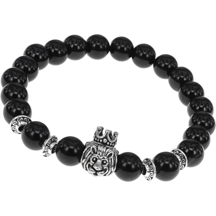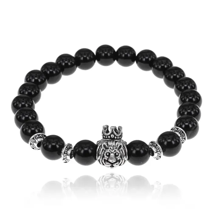 Браслет Царь зверей с нат.камнем Черный агат 8мм BSHE-13-29