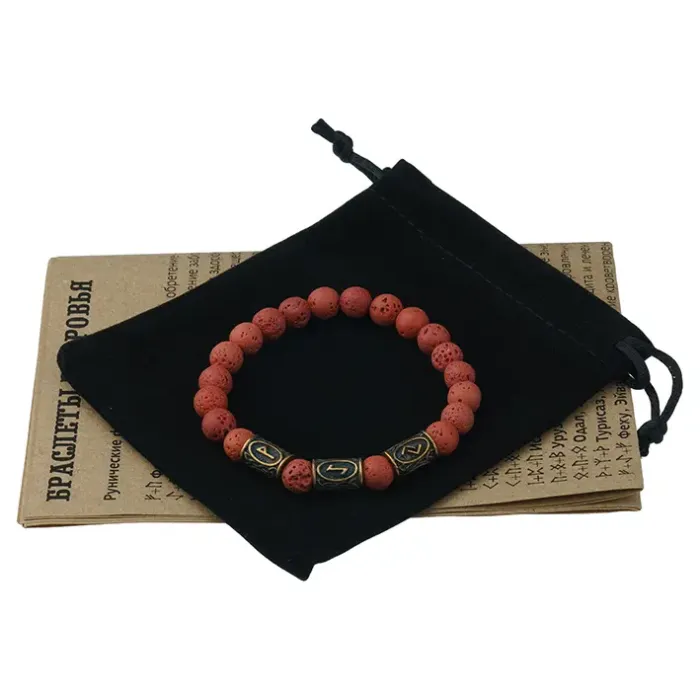 Аромабраслет Профилактика и оздоровление выполнен из натурального камня Лава красно-коричневого цвета, украшенный рунической формулой здоровья. Этот стильный аксессуар не только дополняет образ, но и помогает создать атмосферу гармонии благодаря способности лавы впитывать эфирные масла. В комплект входит буклет с описанием целебных рунических формул и рекомендованных эфирных масел, а также бархатный мешочек для удобного хранения браслета. Основные руны — Вуньо, Эйваз, Йера — традиционно используются для профилактики заболеваний и общего оздоровления организма. Внутренний диаметр браслета составляет ~ 5,5 см, а диаметр бусин из лавы — 8 мм. Браслет упакован в прозрачный пакет с еврослотом, что делает его отличным вариантом для подарка или создания уюта.