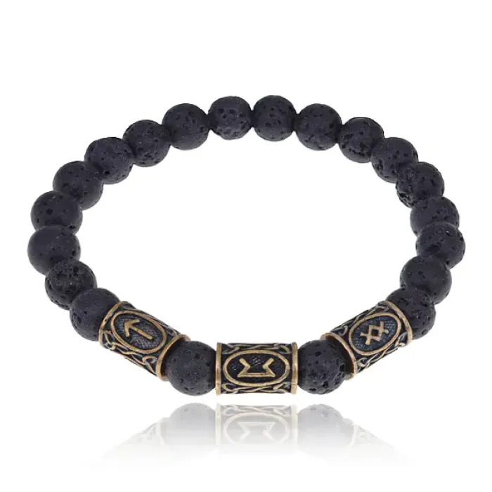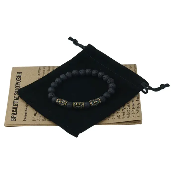 Аромабраслет Мужское здоровье BSZRL-12 выполнен из натурального черного камня Лава и украшен рунической формулой, направленной на поддержание мужского здоровья. Браслет обладает уникальной способностью впитывать эфирные масла, что делает его идеальным аксессуаром для аромабижутерии. В комплект входит буклет с описанием целебных рунических формул и рекомендациями по использованию эфирных масел при различных недугах, а также бархатный мешочек для хранения. Внутренний диаметр браслета составляет около 5,5 см, а диаметр бусин — 8 мм. Руны изготовлены из латуни и добавляют изделию особую ценность. Этот браслет станет отличным подарком или стильным элементом для создания уютной атмосферы.