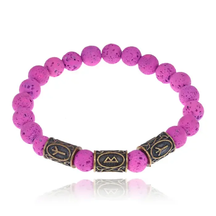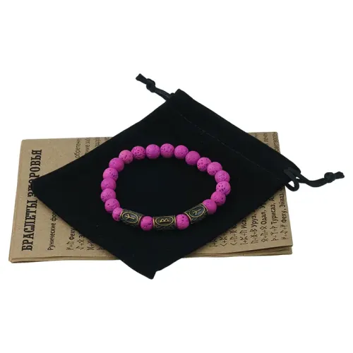 Аромабраслет Защита от женских заболеваний BSZRL-13 — это стильный стрейч-браслет из натурального малинового камня лавы, украшенный рунической формулой здоровья. Лава обладает уникальной способностью впитывать эфирные масла, что делает этот браслет идеальным аксессуаром для аромабижутерии. В комплекте предоставляется буклет с описанием целебных рунических формул и эфирных масел, а также бархатный мешочек для удобного хранения.