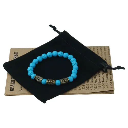 Аромабраслет Укрепление иммунитета выполнен из натурального голубого камня лавы и украшен рунической формулой здоровья. Этот стильный аксессуар не только дополняет образ, но и обладает уникальными свойствами: лава прекрасно впитывает эфирные масла, что делает его идеальным для использования в аромабижутерии. В комплекте прилагается буклет с описаниями целебных рунических формул и рекомендуемых эфирных масел, а также бархатный мешочек для удобного хранения браслета.