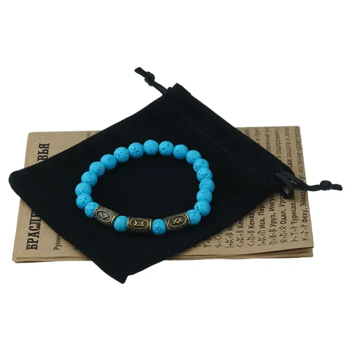 - Изготовлен из высококачественной лавы и латунных рун.