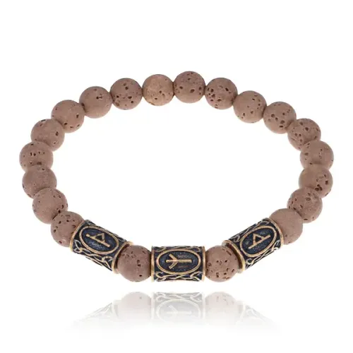 Аромабраслет Защита и лечение суставов BSZRL-21 выполнен из натурального коричневого камня Лава, который прекрасно впитывает эфирные масла. Этот стильный стрейч-браслет украшен рунической формулой здоровья, что делает его не только модным аксессуаром, но и помощником в поддержании благополучия. В комплекте прилагается буклет с описаниями целебных рунических формул и рекомендациями по использованию эфирных масел для различных заболеваний, а также бархатный мешочек для удобного хранения браслета. Внутренний диаметр составляет около 5,5 см, а диаметр бусин — 8 мм. Руны изготовлены из латуни и добавляют изделию особую значимость.