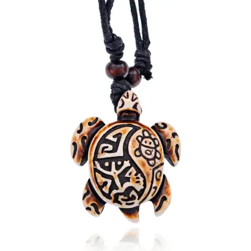 Сувенирный амулет в виде черепахи из пластика и дерева на регулируемом шнурке.
