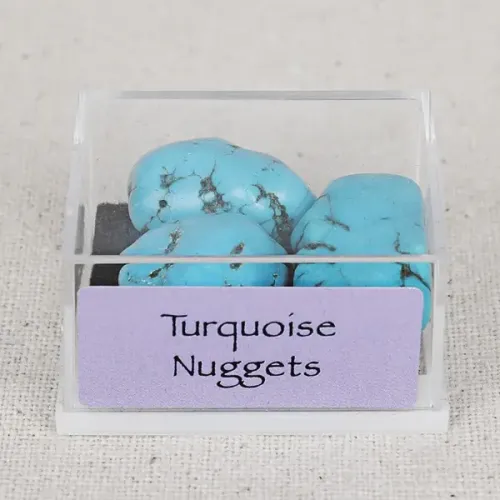 Натуральный минерал бирюза в пластиковой коробке для коллекции или сувенира.