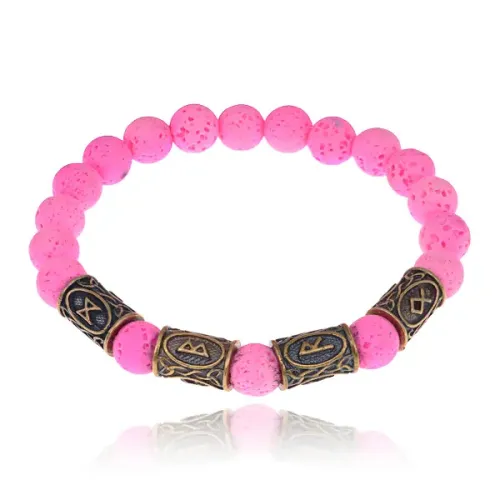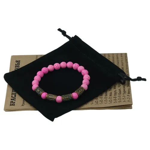 Аромабраслет Успешные роды BSZRL-26 — это стильный стрейч-браслет из натурального розового камня лавы, украшенный рунической формулой здоровья. Лава обладает уникальной способностью впитывать эфирные масла, что делает этот аксессуар идеальным для аромабижутерии. В комплекте предоставляется буклет с описаниями целебных рунических формул и рекомендациями по использованию эфирных масел при различных недугах, а также бархатный мешочек для удобного хранения браслета.
