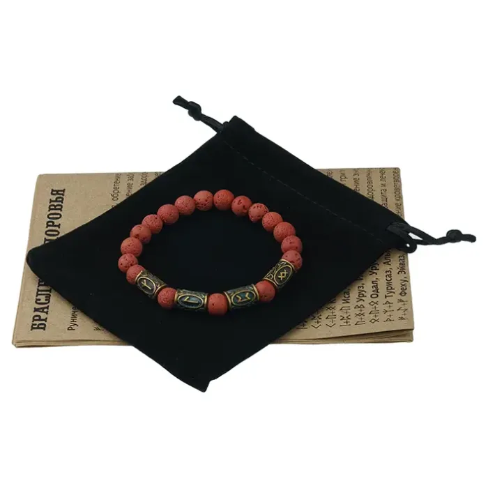 Аромабраслет Заживление Ран, Восстановление Тканей выполнен из натурального камня Лава красно-коричневого цвета и украшен рунической формулой здоровья. Этот стильный браслет не только привлекает внимание, но и обладает уникальной способностью впитывать эфирные масла, что делает его идеальным аксессуаром для аромабижутерии. В комплект входит буклет с описанием целебных рунических формул и рекомендованных эфирных масел, а также бархатный мешочек для удобного хранения.