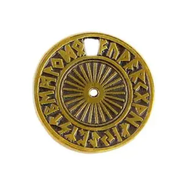 - Амулет украшен знаками из письменности викингов, которые традиционно использовались для магических гаданий и предсказаний.