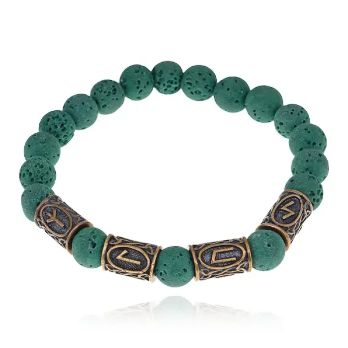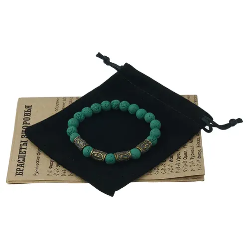 Аромабраслет от стресса и депрессий BSZRL-29 — это стильный стрейч-браслет из натурального зеленого камня лавы, украшенный рунической формулой здоровья. Лава обладает уникальной способностью впитывать эфирные масла, что делает его идеальным аксессуаром для аромабижутерии. В комплекте предусмотрен буклет с описанием целебных рунических формул и рекомендациями по использованию эфирных масел при различных недугах, а также бархатный мешочек для удобного хранения браслета.
