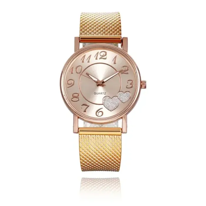 Наручные часы с кварцевым механизмом и корпусом цвета розовое золото.