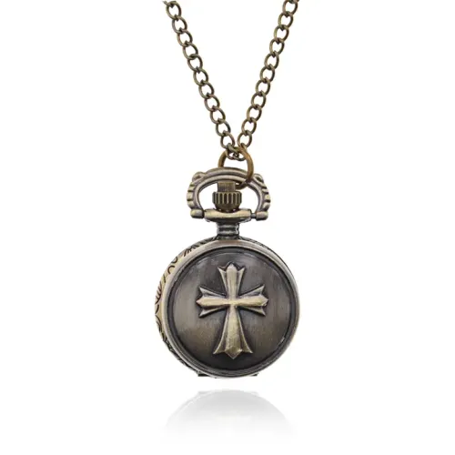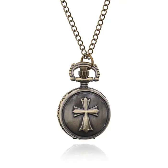 Эти открывающиеся часы в виде кулона с цепочкой — стильный аксессуар, который сочетает в себе функциональность и оригинальный дизайн. Символика креста придаёт изделию особый смысл, делая его не только украшением, но и символом веры.