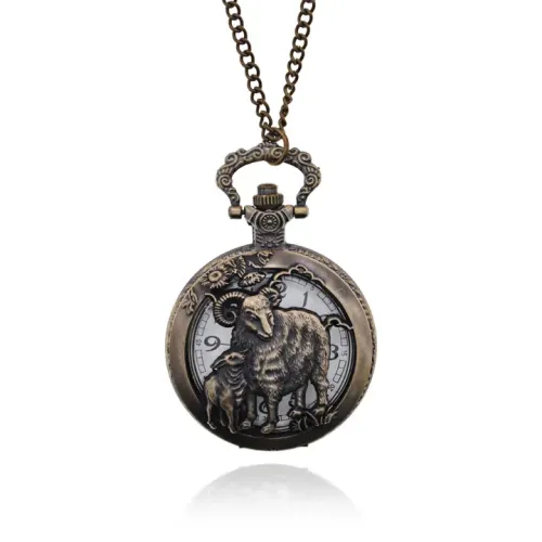 Открывающиеся часы - кулон с цепочкой Восточный гороскоп, Коза WA113-08