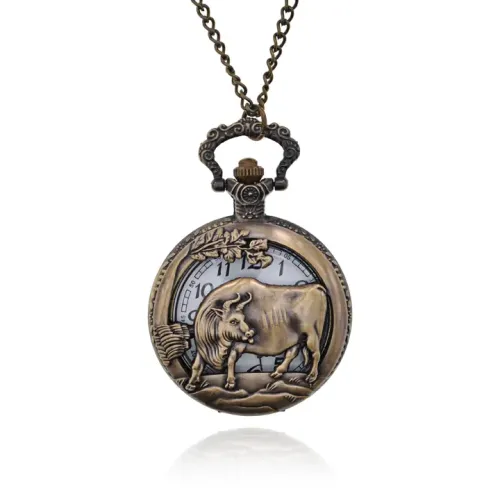 Открывающиеся часы - кулон с цепочкой Восточный гороскоп, Бык WA113-10