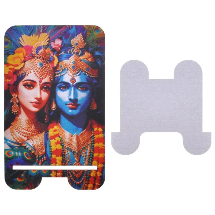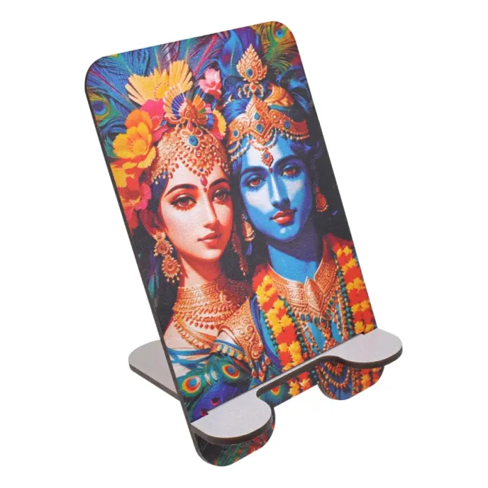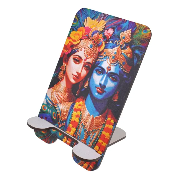 Подставка для телефона из ХДФ с дизайном, изображающим Радху и Кришну.