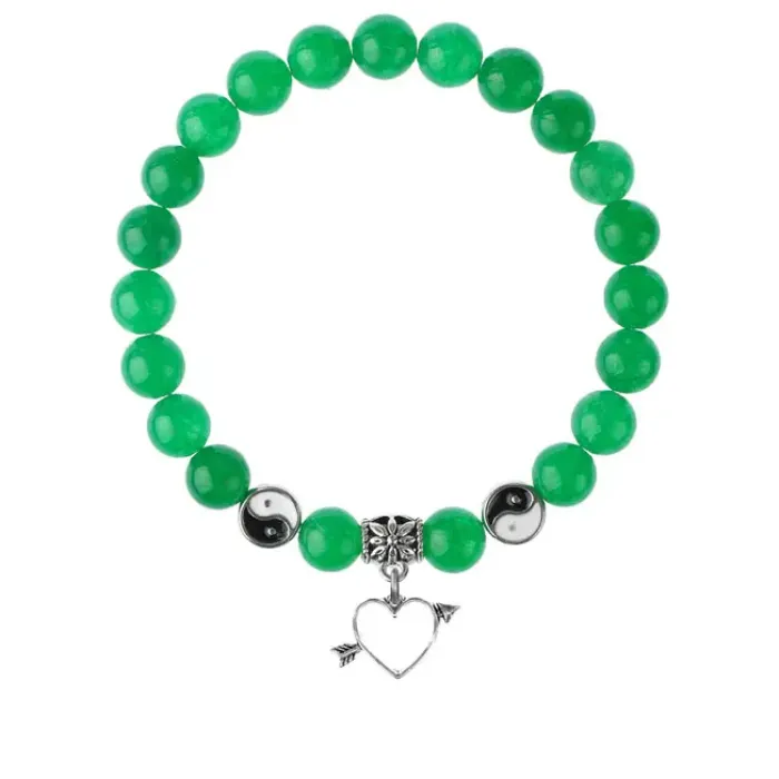 Браслет Сердце — это уникальный амулет из натурального нефрита, который символизирует любовь и доброту. Этот стильный аксессуар дополнен подвеской-талисманом из бижутерного сплава с покрытием под серебро, что придаёт ему особую привлекательность.