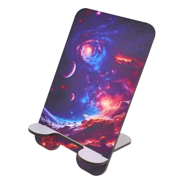 Подставка для телефона с ярким дизайном, которая станет стильным дополнением любого интерьера. Изготовлена из качественного ХДФ, она обеспечивает надежную поддержку для мобильных устройств. Высота подставки составляет 13 см, а ширина — 9 см, что делает её удобной в использовании на столе или тумбочке. Яркий дизайн подставки добавит нотку космического вдохновения в повседневную жизнь.