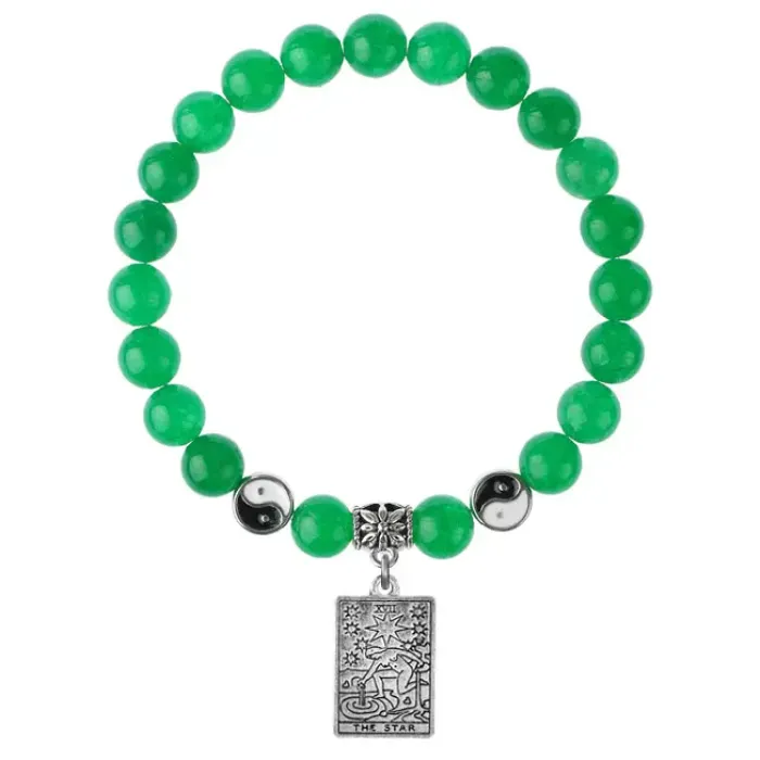 Браслет из натурального нефрита с подвеской в виде карты Таро «Звезда».