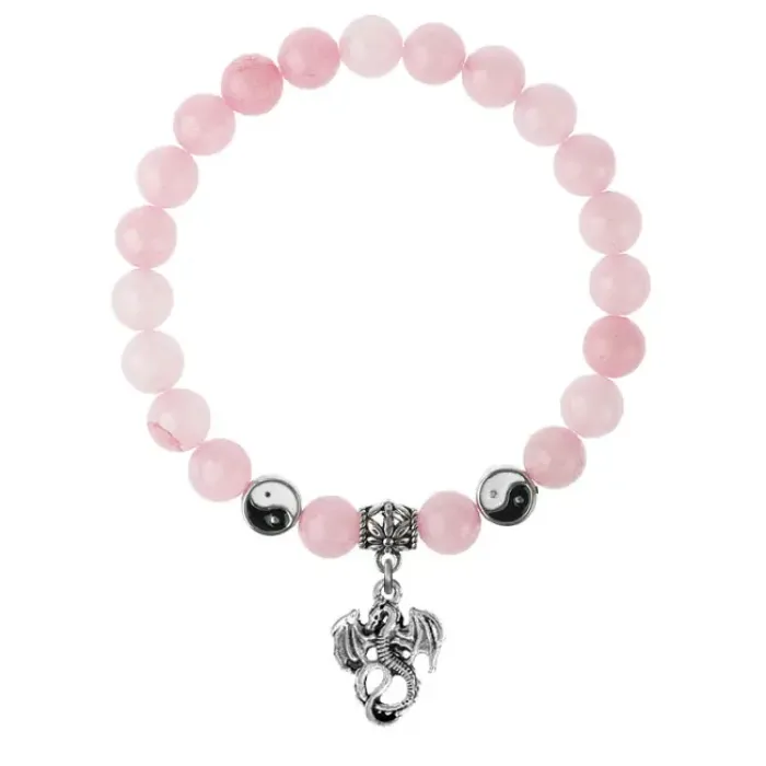 Браслет-амулет из натурального розового кварца с подвеской-талисманом в виде дракона.