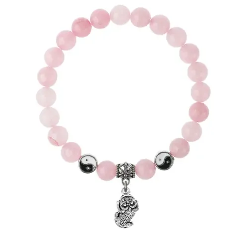 Браслет-амулет из натурального розового кварца с подвеской в виде талисмана Пи Яо.