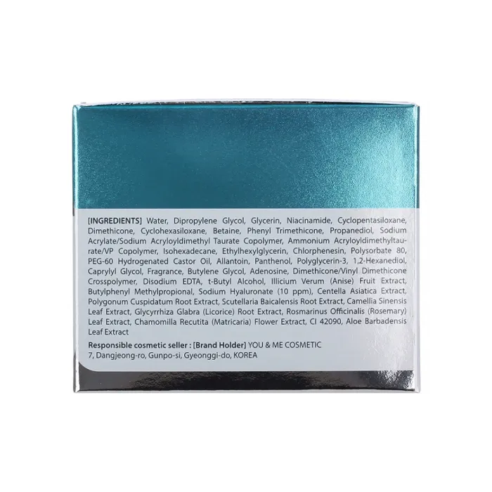 Состав: Гиалуронат натрия (Sodium Hyaluronate), Пантенол (Panthenol), Экстракт центеллы азиатской (Centella Asiatica Extract), Экстракты растений: корень горца японского (Polygonum Cuspidatum Root Extract), корень скутелларии байкальской (Scutellaria Baicalensis Root Extract), листья камелии китайской (Camellia Sinensis Leaf Extract), корень солодки голой (Glycyrrhiza Glabra Root Extract), листья розмарина лекарственного (Rosmarinus Officinalis Leaf Extract) и цветы ромашки аптечной (Chamomilla Recutita Flower Extract).