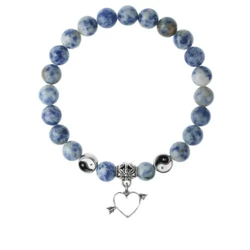 Браслет Сердце из натурального камня Содалит — это не просто украшение, а настоящий амулет. Он символизирует волю и мужество, помогает в достижении целей и гармонии. Подвеска-талисман из бижутерного сплава с покрытием под серебро добавляет элегантности. Внутренний диаметр браслета составляет около 5,5 см, а диаметр каменных бусин — 8 мм. Упаковка включает прозрачный пакет с европодвесом, бархатный мешочек и буклет с описаниями значений подвесок и свойств камней. Содалит ценится за свою способность защищать от страхов и неудач.
