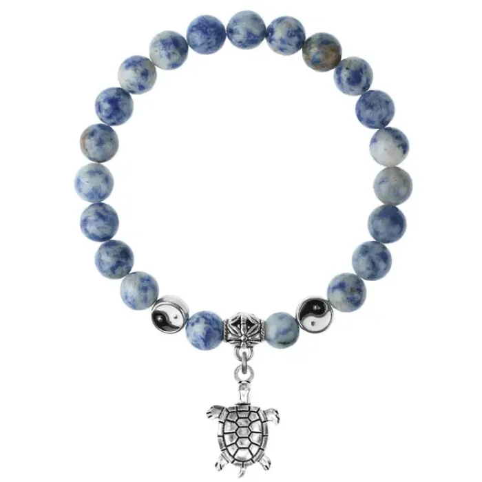 Браслет-амулет из натурального камня содалит с подвеской-талисманом в виде черепахи.