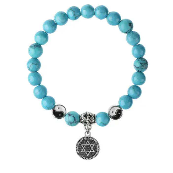 Браслет-амулет из синтетической бирюзы с подвеской в форме Звезды Давида.