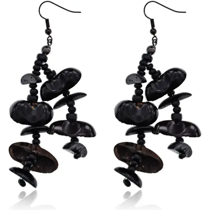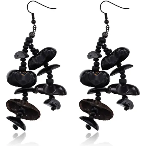 Серьги этнического дизайна из пластика и дерева с декором из бисера.