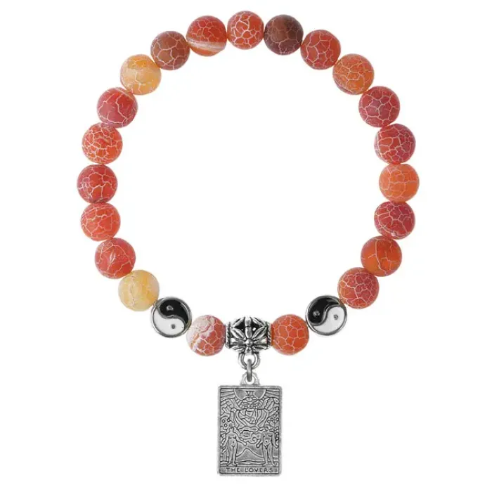 Браслет из натурального африканского агата с подвеской-талисманом в виде аркана Таро «Любовники».