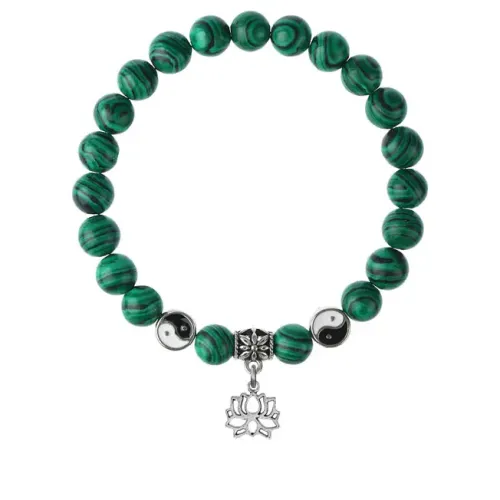Браслет из синтетического малахита с подвеской-талисманом в виде лотоса.