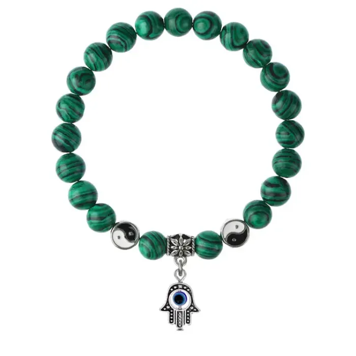 Браслет Хамса (от сглаза и зла), Малахит 8мм BSP1-10-3006