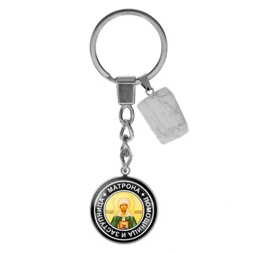 Брелок из нержавеющей стали Матрона Московская с натуральным камнем Кахолонг BKM-080
