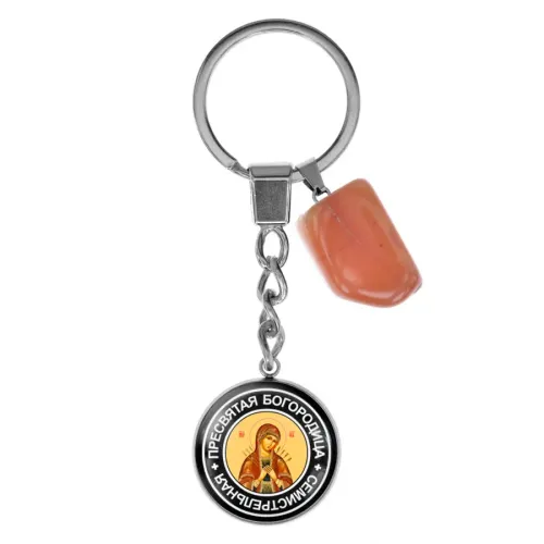 Брелок из нержавеющей стали Пресвятая Богородица с натуральным камнем Сердолик BKM-083
