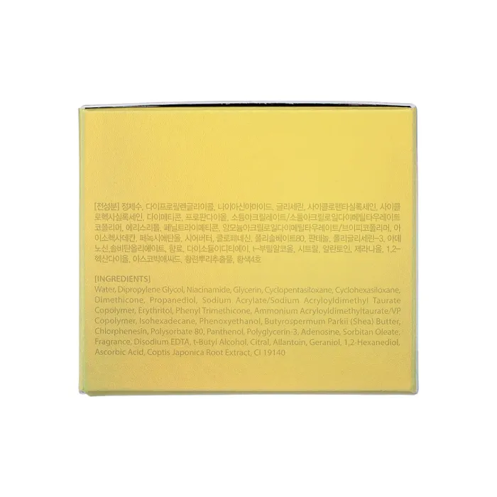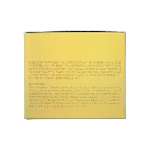 Состав: Вода, дипропиленгликоль, ниацинамид, глицерин, циклопентасилоксан, циклогексасилоксан, диметикон, пропандиол, натрия акрилат/натрия акрилоилдиэтилтаурат сополимерный комплекс с эритритом и фенил триметиконом; аммония акрилоилдиэтилтаурат/VP сополимер изо-гексадекан с феноксиэтанолом; масло ши (Butyrospermum Parkii), хлорфенезин; полисорбат 80 с пантенолом; полиглицерин-3 с аденозином; сорбитан олеат с ароматизатором; динатрий ЭДТА t-бутиловый спирт цитраль аллантоин гераниол 1-2-гександиол аскорбиновая кислота экстракт корня Coptis Japonica CI 19140.