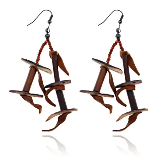 Серьги этнического стиля из пластика, бижутерного сплава и ткани с декором из бисера.