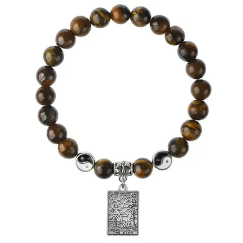 Браслет Таро - Звезда из натурального камня Тигровый глаз сочетает в себе красоту и символику. Этот браслет-амулет, украшенный подвеской-талисманом из бижутерного сплава с покрытием под серебро, станет не только стильным аксессуаром, но и источником положительной энергии.