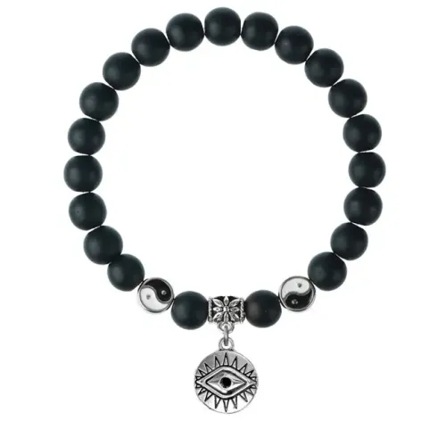 Браслет-амулет из синтетического шунгита с подвеской в виде глаза.