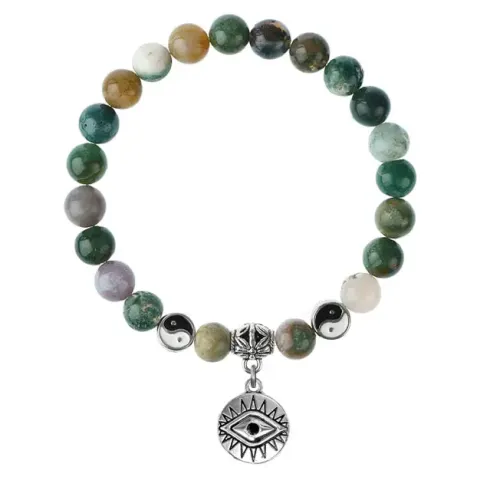 Браслет-амулет из натуральной яшмы с подвеской в виде глаза.