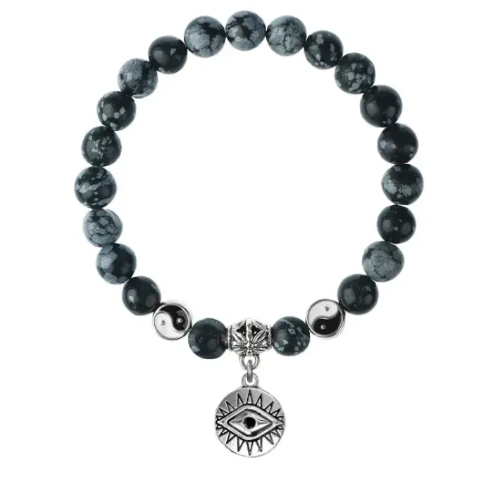 Браслет Глаз (от сглаза и порчи), Снежный обсидиан 8мм BSP1-17-3007