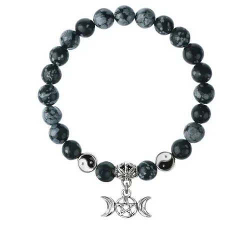 Браслет-амулет из натурального снежного обсидиана с подвеской из бижутерного сплава.