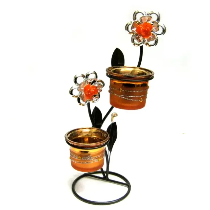 Подсвечник 2 цветка 27см металл, стекло K040